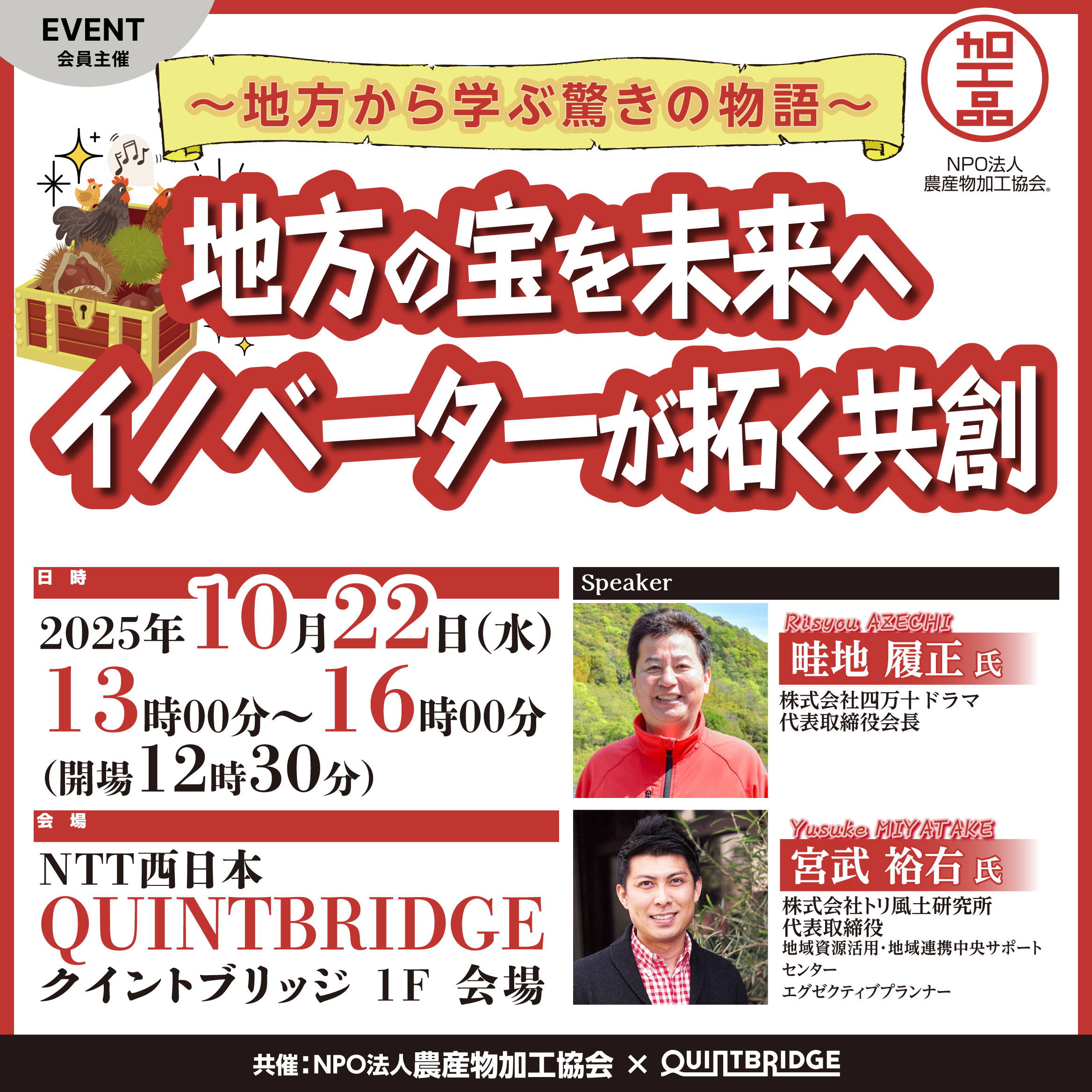 共創セミナー開催のご案内 NPO法人農産物加工協会 × QUI…